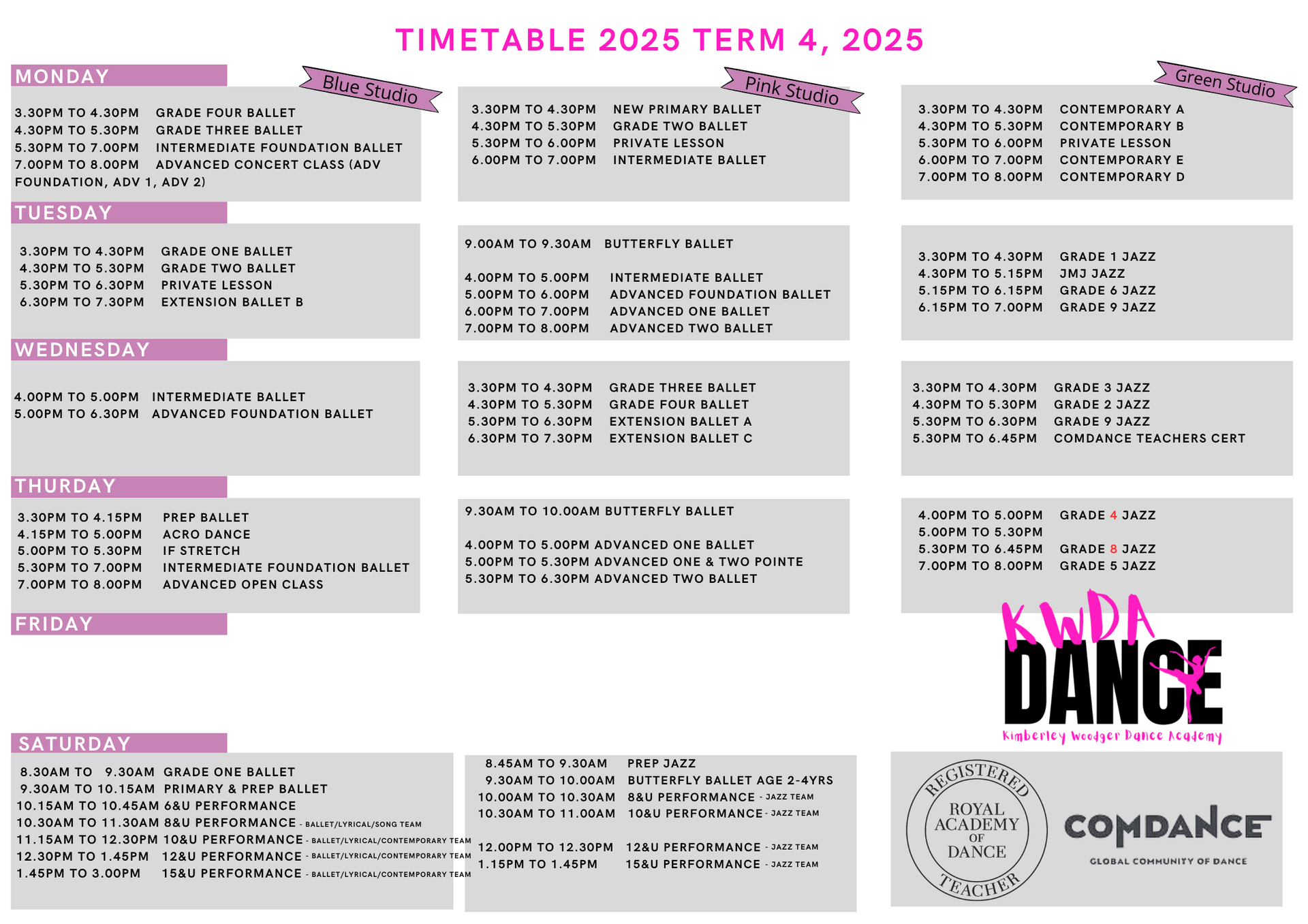NEW FAMILIES PLEASE ENROL CLICKING THE CLASS YOU WISH TO ENROL INTO ON THE TIMETABLE BELOW. SCROLL DOWN THE TIMETABLE FOR ALL OPTIONS.